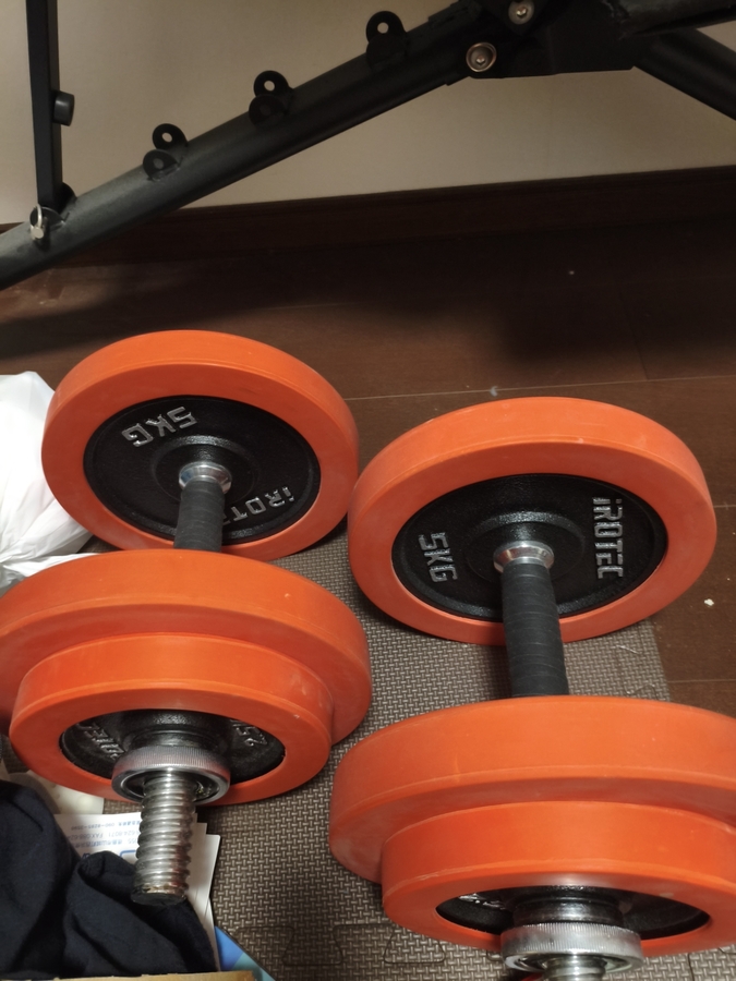 amazonでダンベル(可変式で片方20kg)を2本購入し
