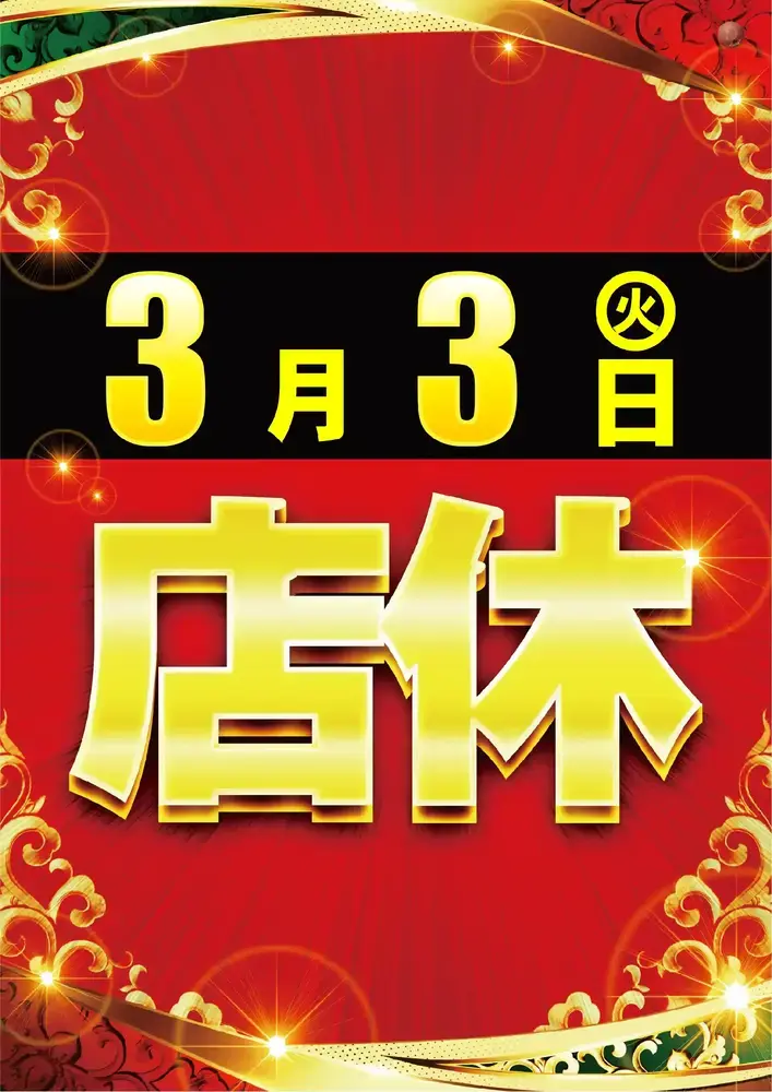 3月3日(火)は新台入替準備の為、