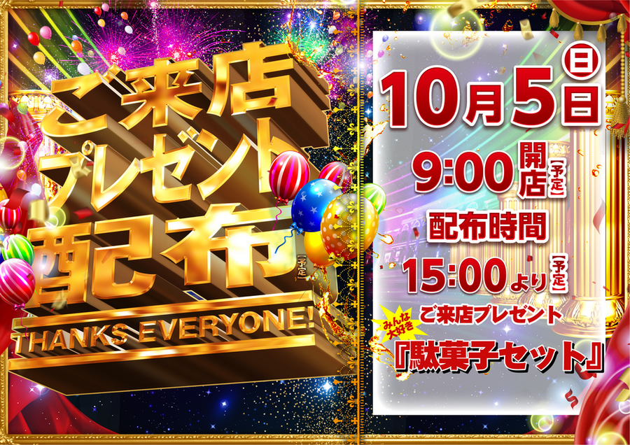 当日は【並び替え抽選開始時間8:40】となっておりますのでお早めにご来店くださいませ