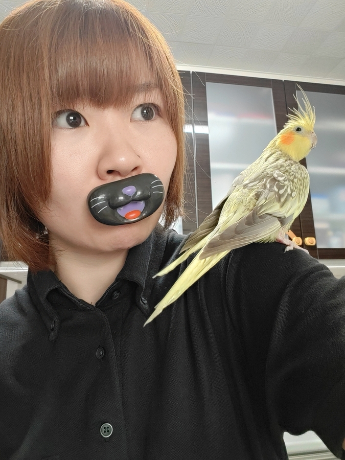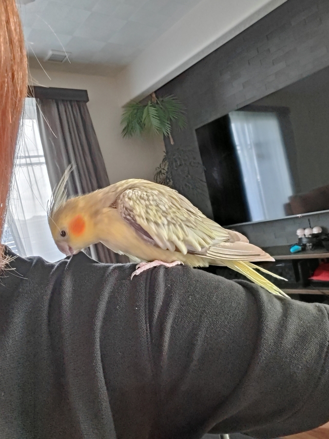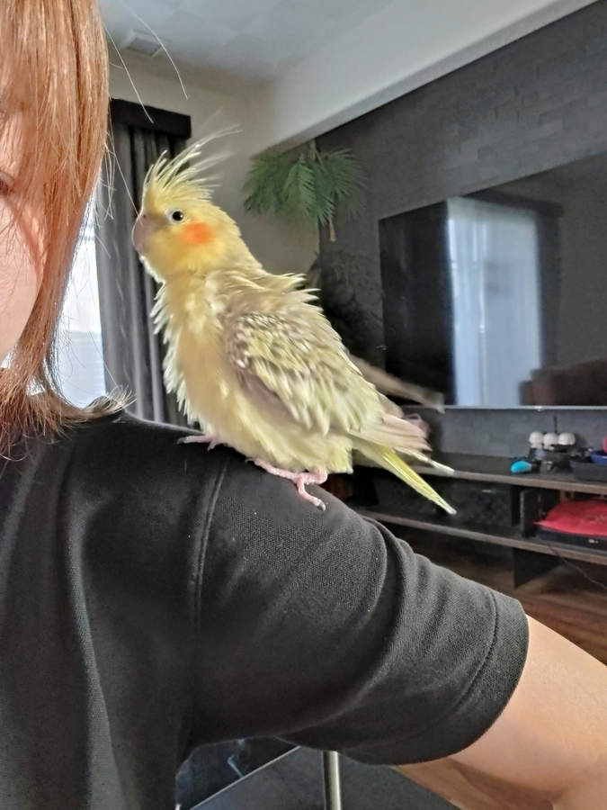 インコが肩に乗ってくれたので何枚か激写