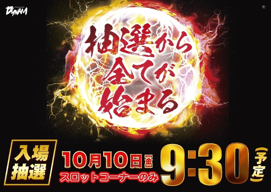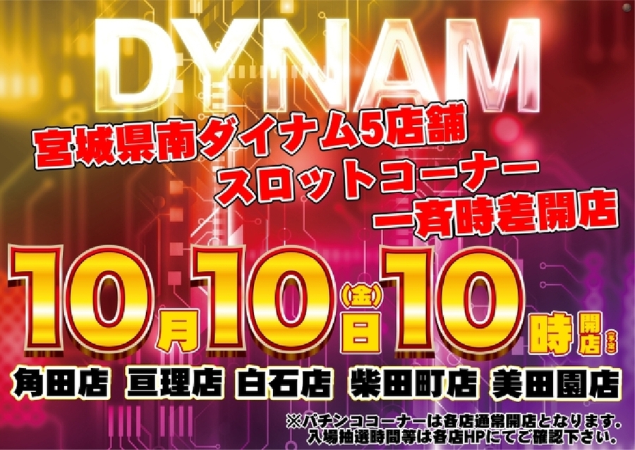 10月10日(金) 10:00開店 ※スロットコーナー時差10:00開店