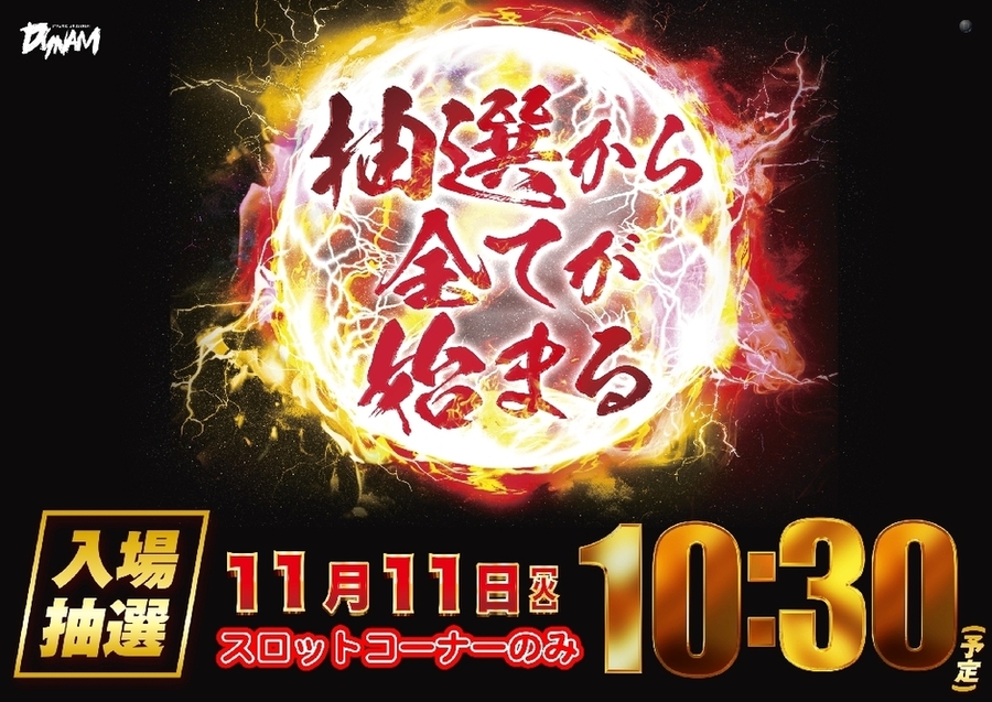 11月11日(火) 11:00開店 ※スロットコーナー時差11:00開店