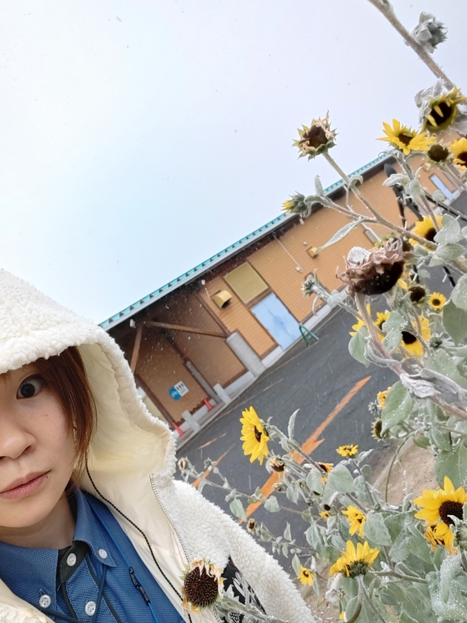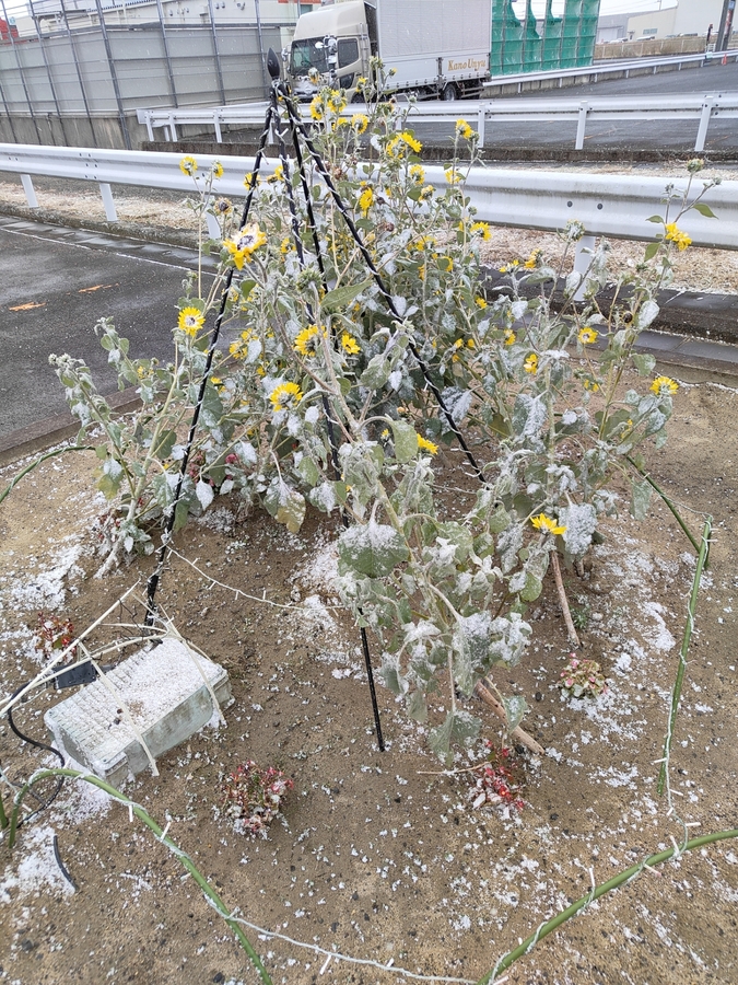 雪が降ってもダイナムのヒマワリは元気いっぱい![]()