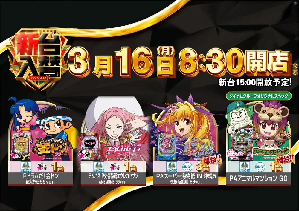 ※新台は15時開放(予定)となっております。