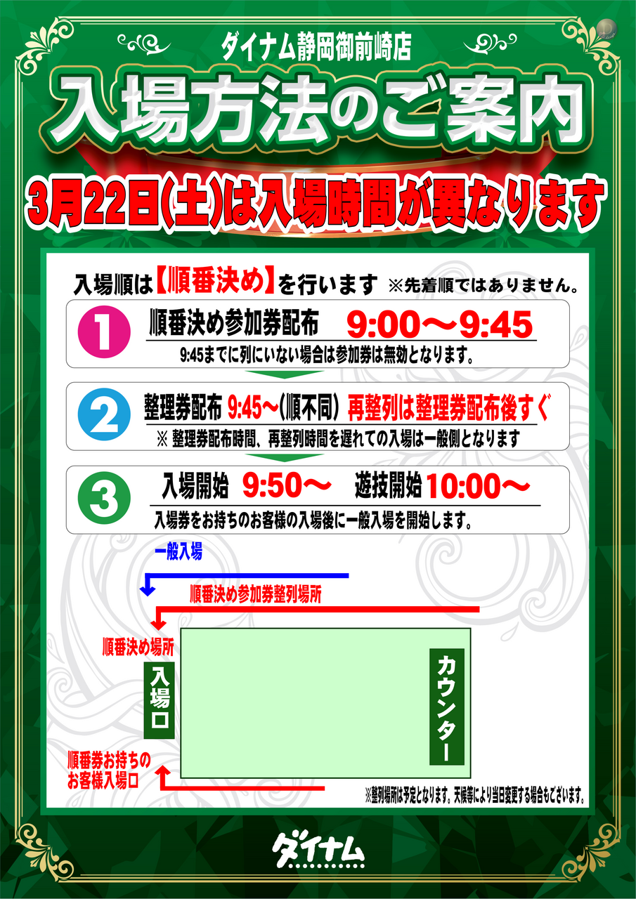 ■大須賀町方面よりお越しのお客様は 国道150号線を御前崎町方面へ進行。 新野川手前の信号を左折(イオンタウン方面)し直進。 右手ダイナムの看板が目印です。■相良町方面よりお越しのお客様は 国道150号線から県道372号線へ入り、浜岡方面へ進行。 コスモ石油さん先の信号を左折し、すぐ右折。 すかの橋を渡りすぐ、右手のダイナムの看板が目印です。