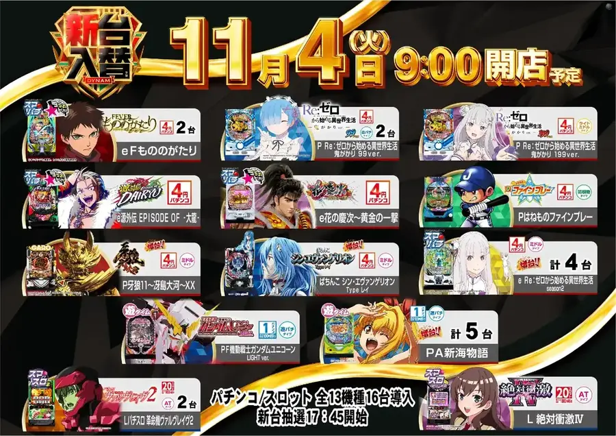新台入替(予定) ☆DYNAM SUKAGAWA☆