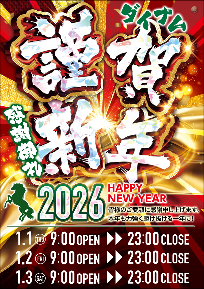 なお、年始の営業時間は通常どおり9時~23時まで営業させていただきます。