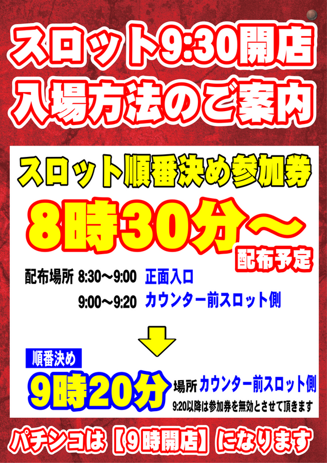スロット9:30開店!