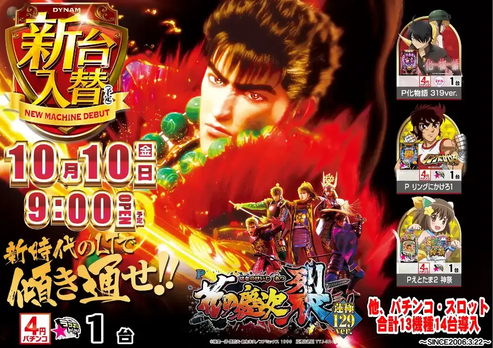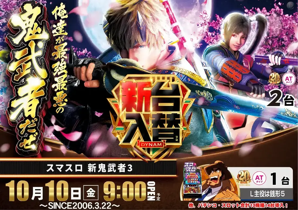 新台 2025年10月10日(金) 入替 機種ラインナップ DYNAM NEW MACHINE★DYNAM NEW MACHINE