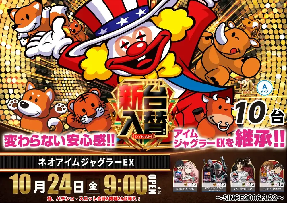 新台 2025年10月24日(金) 入替 機種ラインナップ DYNAM NEW MACHINE★DYNAM NEW MACHINE