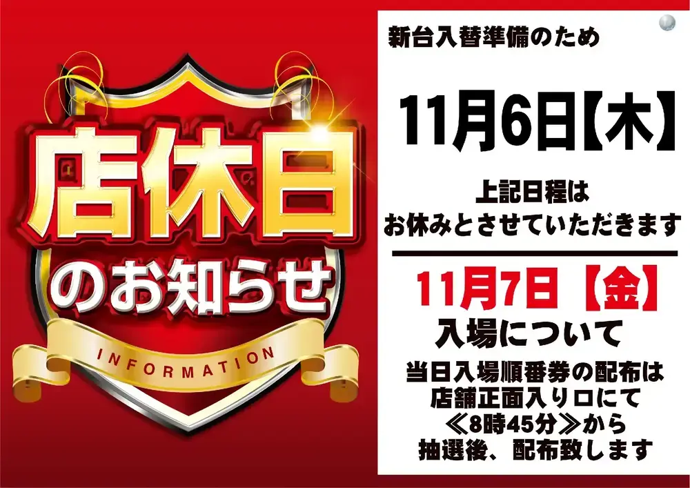 新台入替準備の為、誠に勝手ながら 店休日となっております.