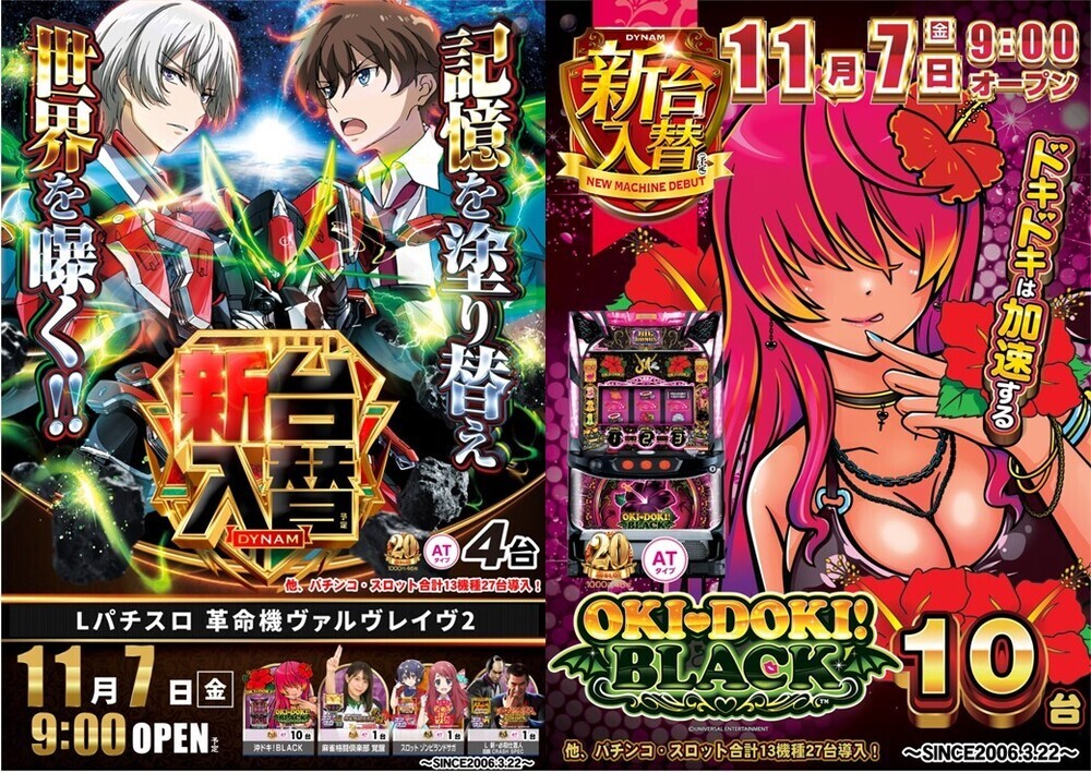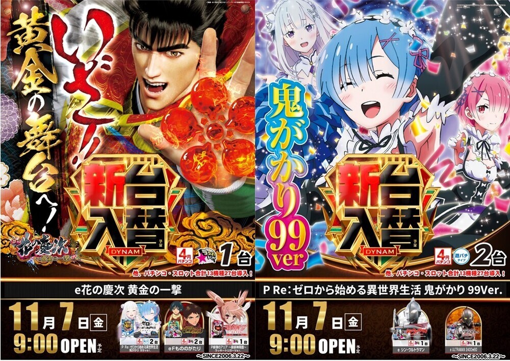 新台 2025年11月7日(金) 入替 機種ラインナップ DYNAM NEW MACHINE★DYNAM NEW MACHINE