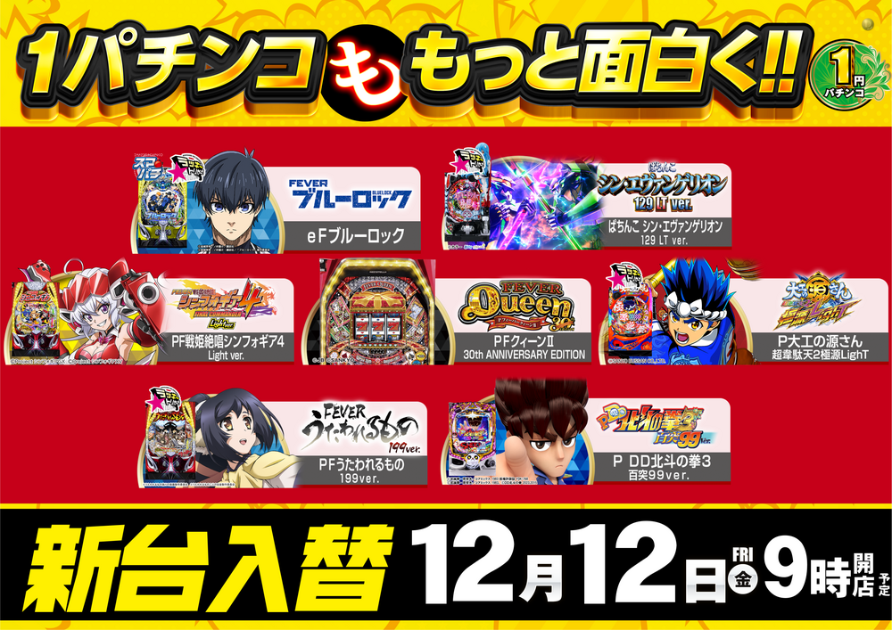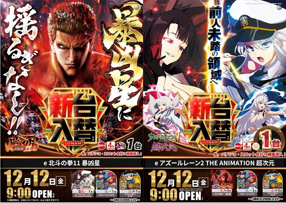 新台 2025年12月12日(金) 入替 機種ラインナップ DYNAM NEW MACHINE★DYNAM NEW MACHINE