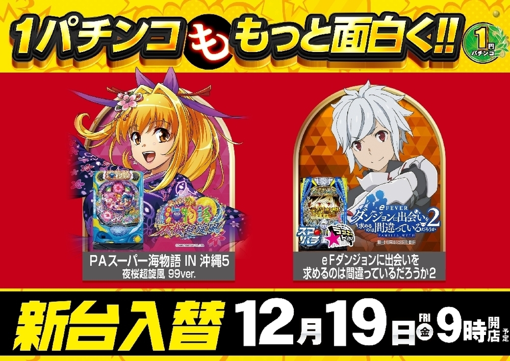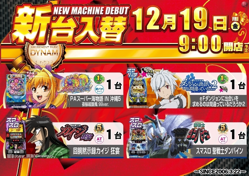新台 2025年12月19日(金) 入替 機種ラインナップ DYNAM NEW MACHINE★DYNAM NEW MACHINE