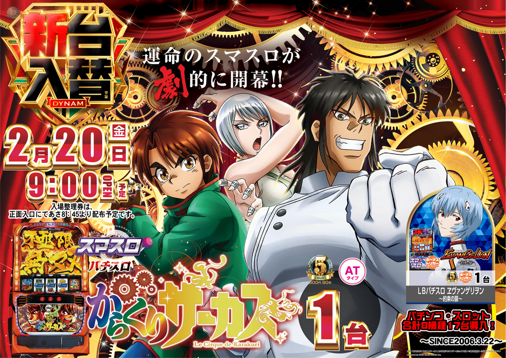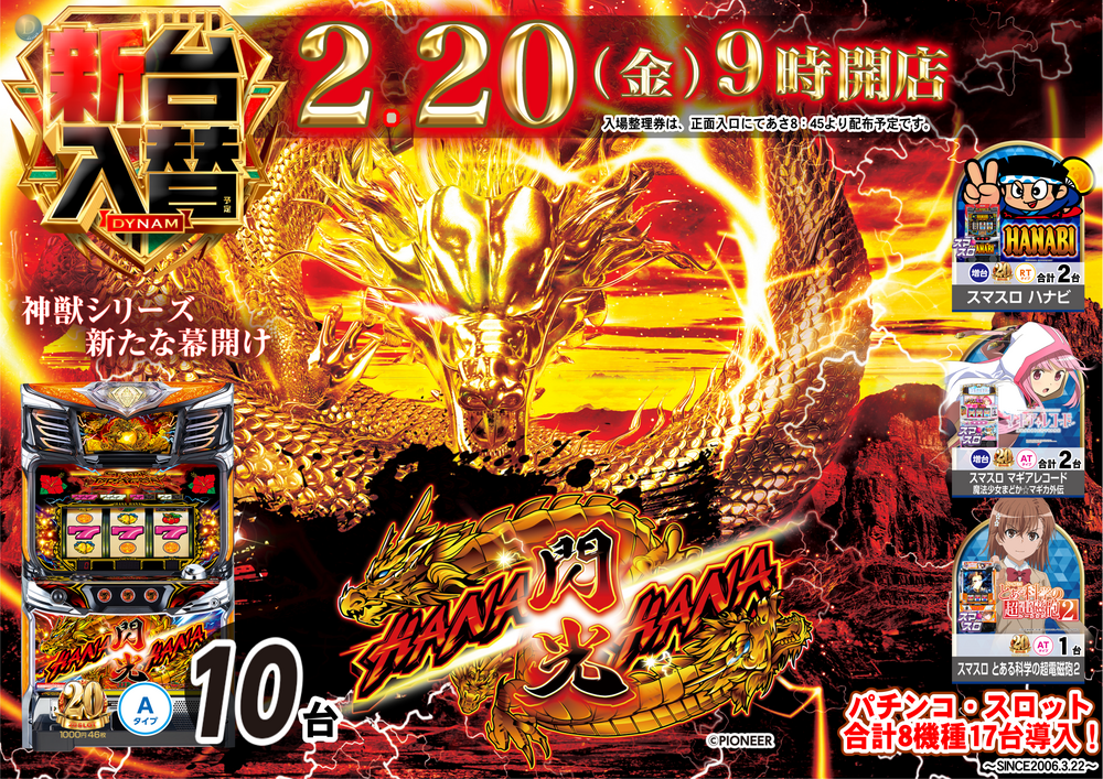 新台 2026年2月20日(金) 入替 機種ラインナップ DYNAM NEW MACHINE★DYNAM NEW MACHINE