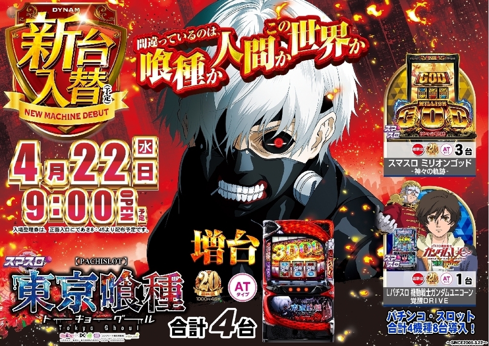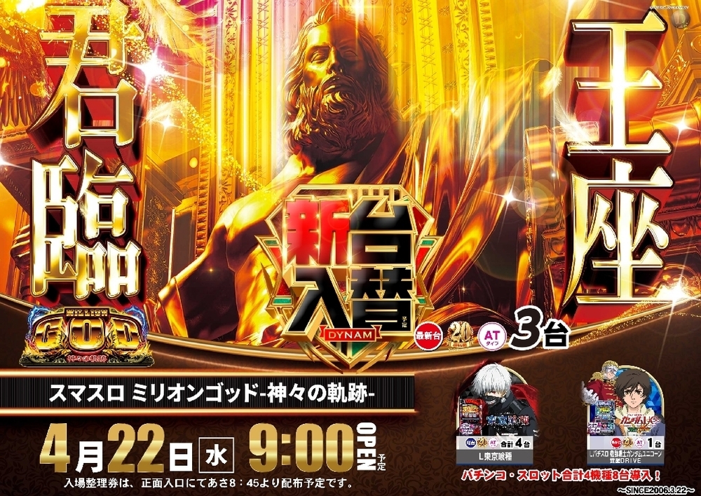 新台 2026年4月22日(水) 入替 機種ラインナップ DYNAM NEW MACHINE★DYNAM NEW MACHINE
