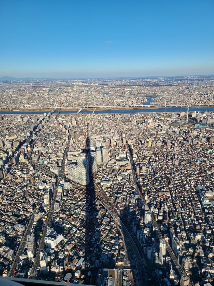 写真だとちょうどスカイツリーの影が映っていますね![]()