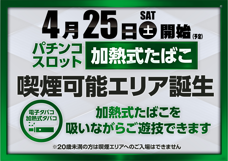 加熱式タバコ喫煙可能エリア誕生! (一部コーナーを除く)