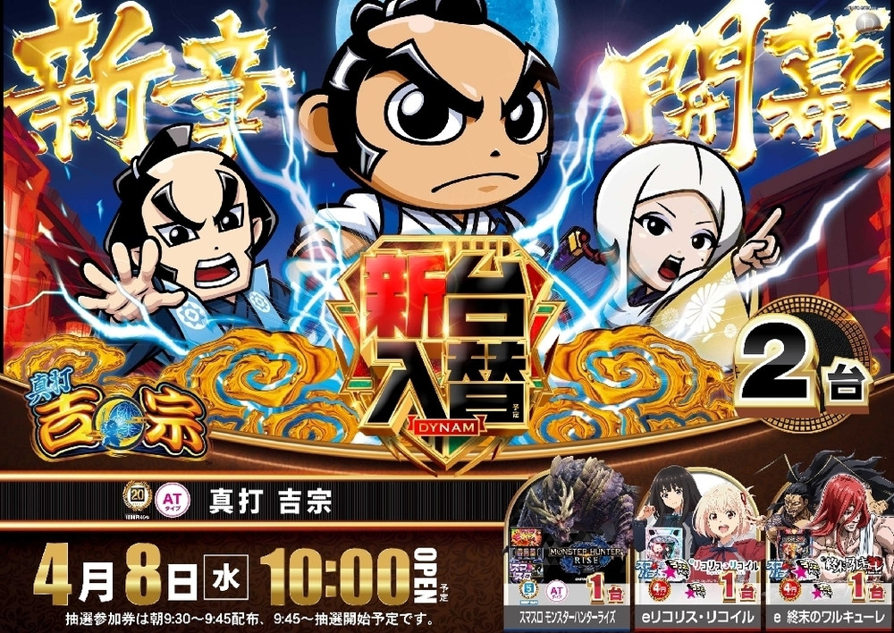 4月8日(水) ★新台入替★ 開催(予定)!!! |