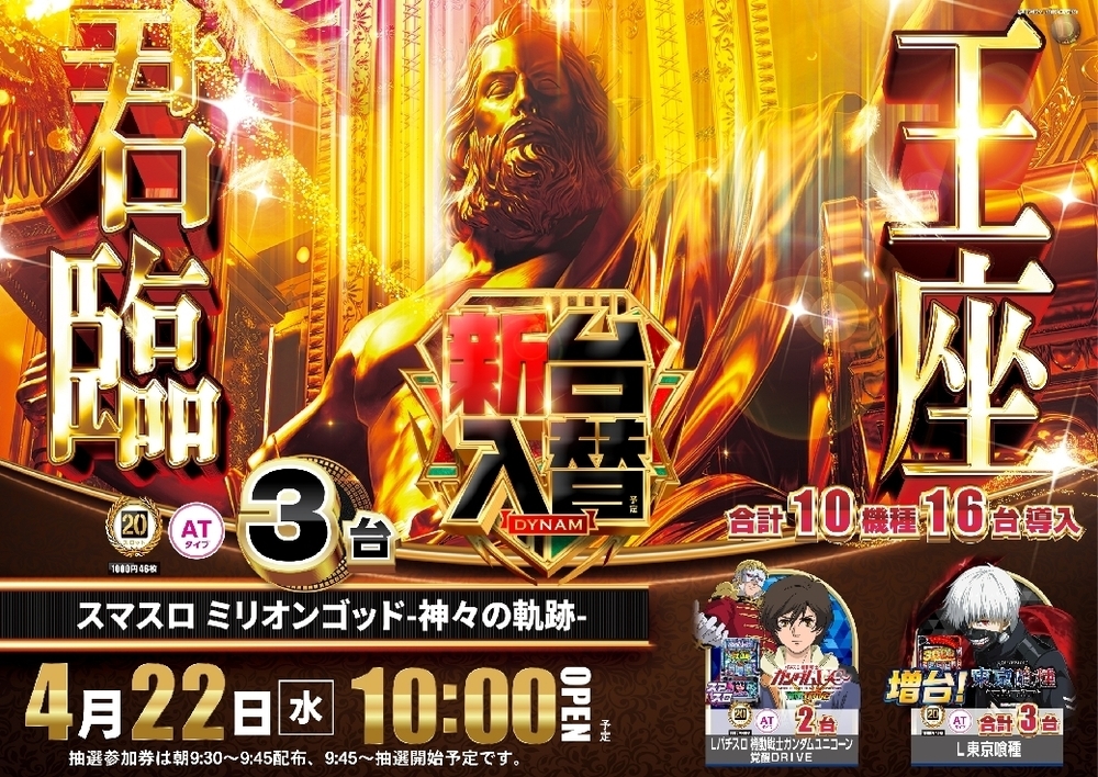 4月22日(水) ★新台入替★ 開催(予定)!!! |