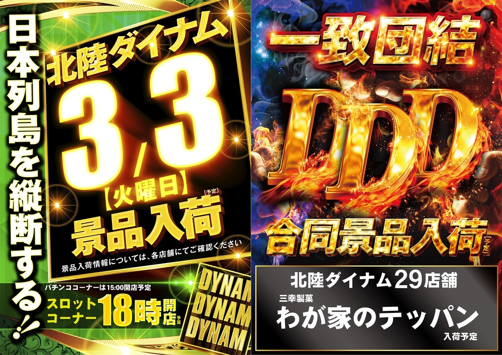 今回は注目の入替と合わせて北陸合同景品入荷を開催します!!