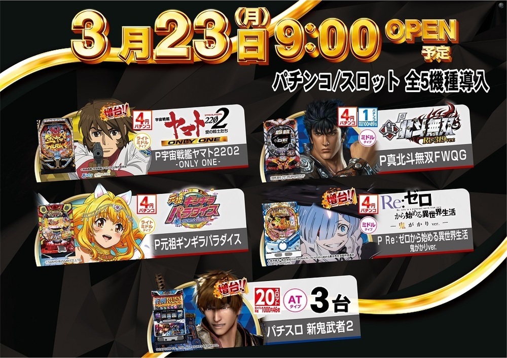 3/23(月) 新台入替(予定)