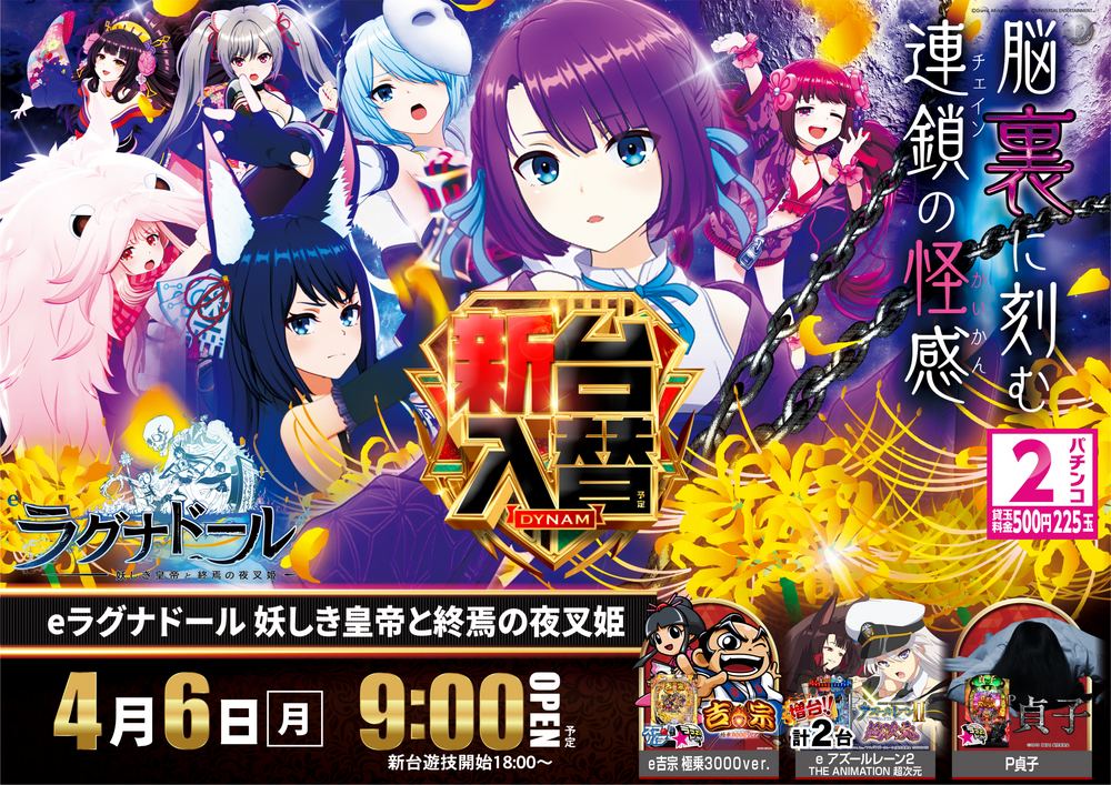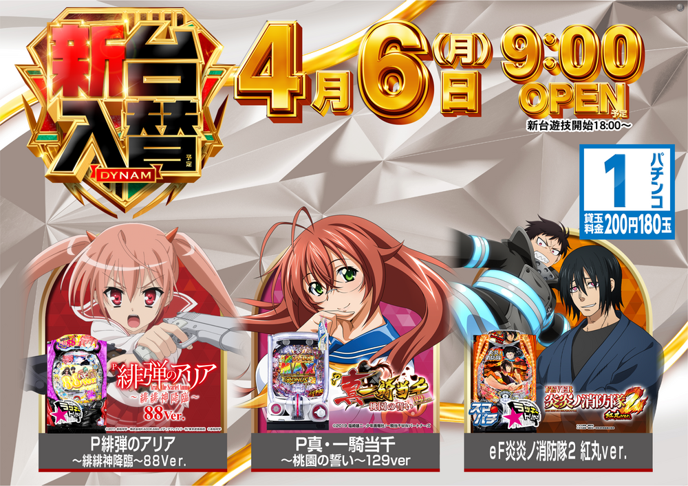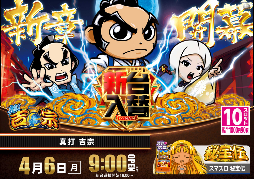 4月6日(月)はダイナム勝山店の新台入替