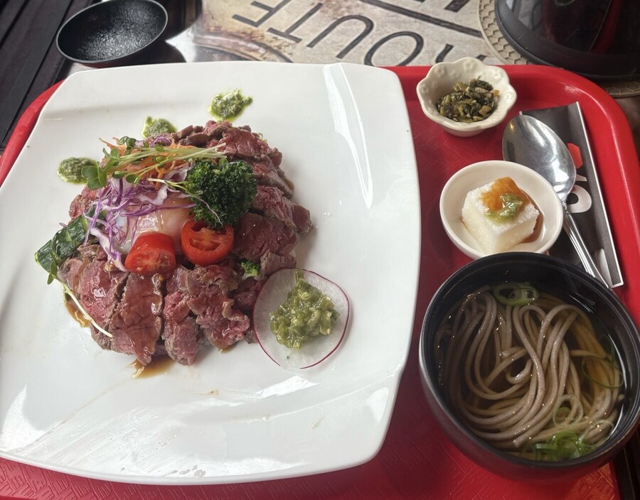 野菜も多めでステーキとは少し違う食感ですが柔らかくて美味しい。