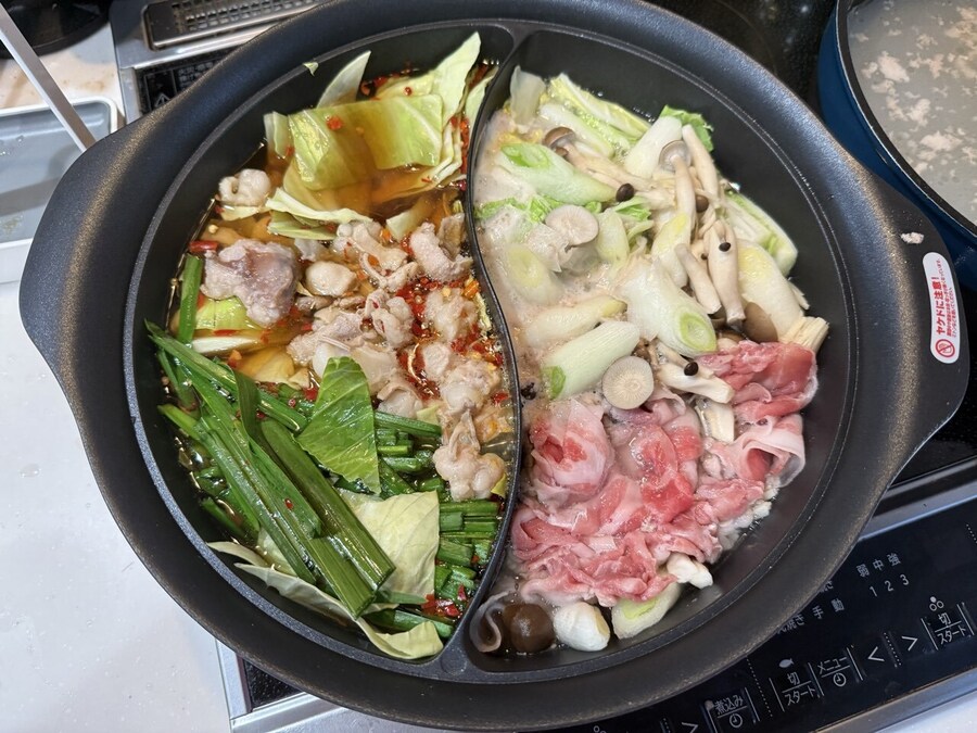 唐辛子を大量に入れて辛くしたので半分は子供用の寄せ鍋です。