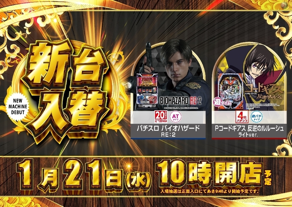 1月21日の新台入替も10時開店(予定) この機会に是非ご来店下さいませ