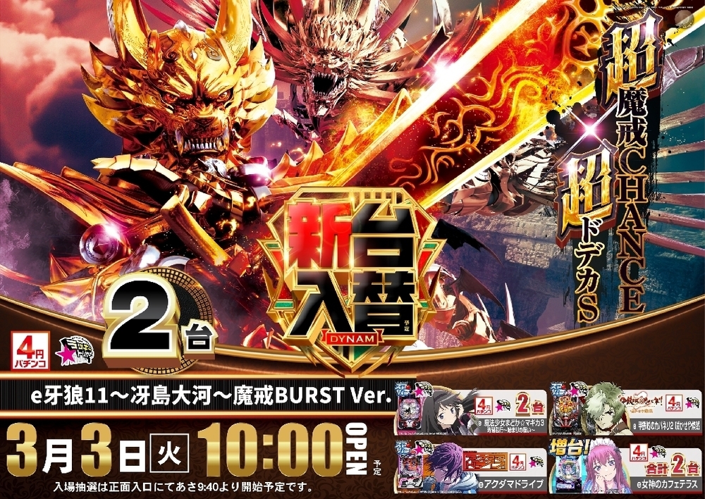 3月3日の新台入替も10時開店(予定)![]()
