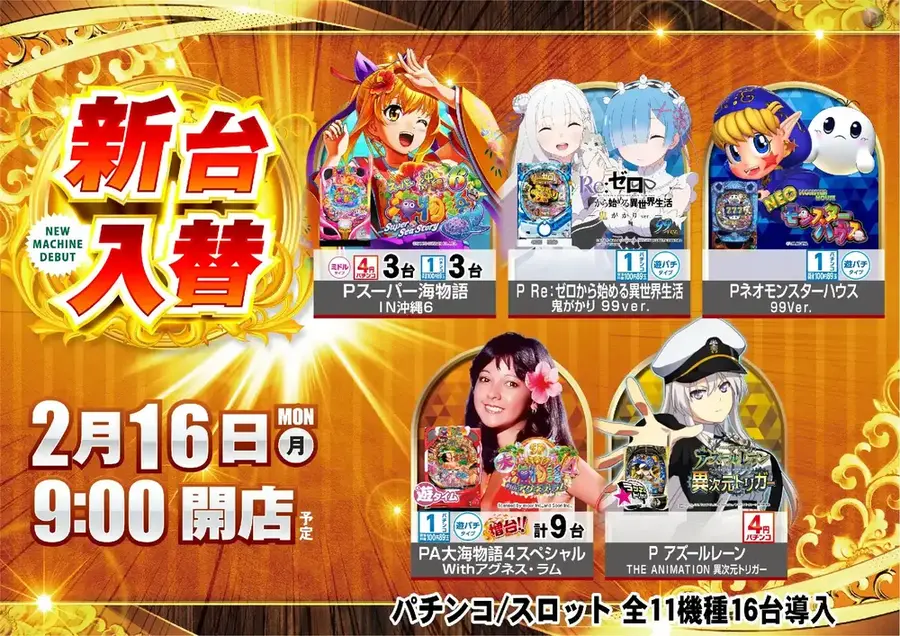 Pスーパー海物語IN沖縄6 ※こちらの機種は1パチンコ(100円89玉)にも導入されます。