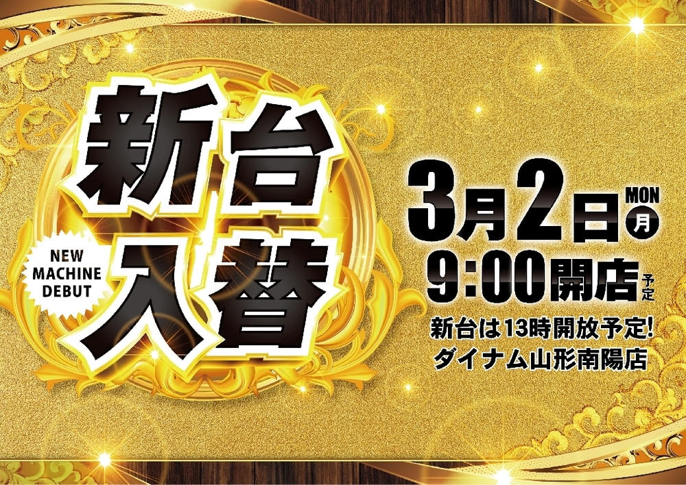 新台はPS共に13:00開放となります。 また、開放時間に新台をご遊技希望のお客様へは 抽選会を実施します あらかじめ、ご了承くださいませ