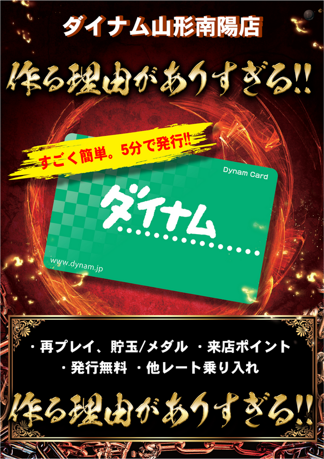 ダイナムカードに貯玉・貯メダルすることで、次回以降は