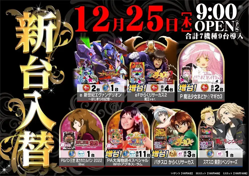 導入台数 4円パチンコ 2台 1パチンコ(100円90玉) 1台