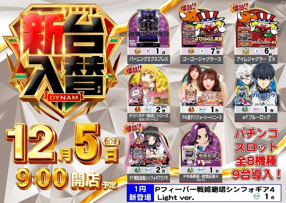 最新台を含む8機種9台導入!!