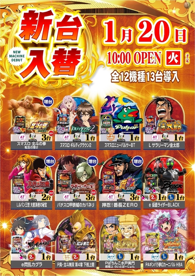 e 仮面ライダーBLACK 1台 ※こちらの機種は1円パチンコにも1台導入致します。