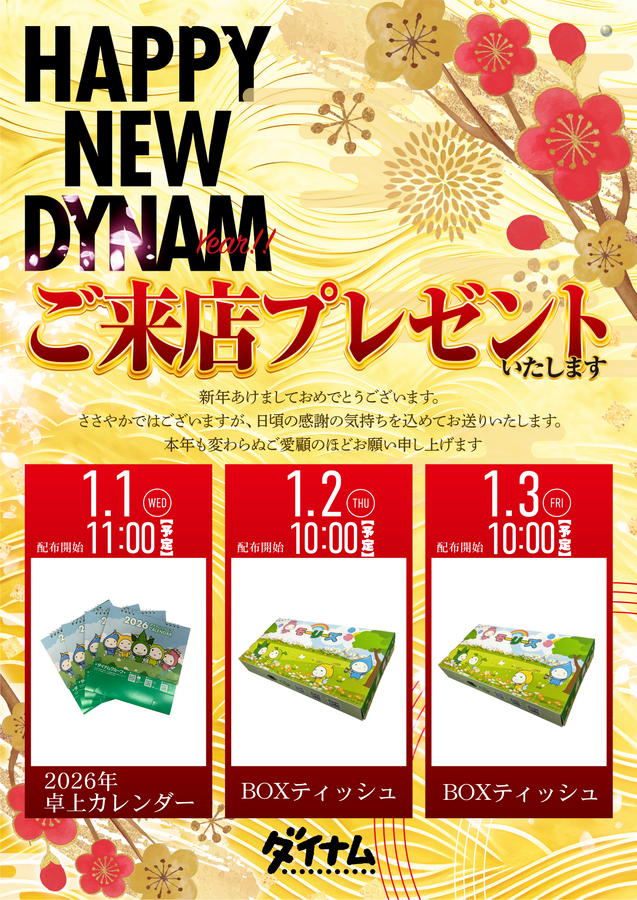 また1/1日~3日はご来店プレゼントをご用意しております!