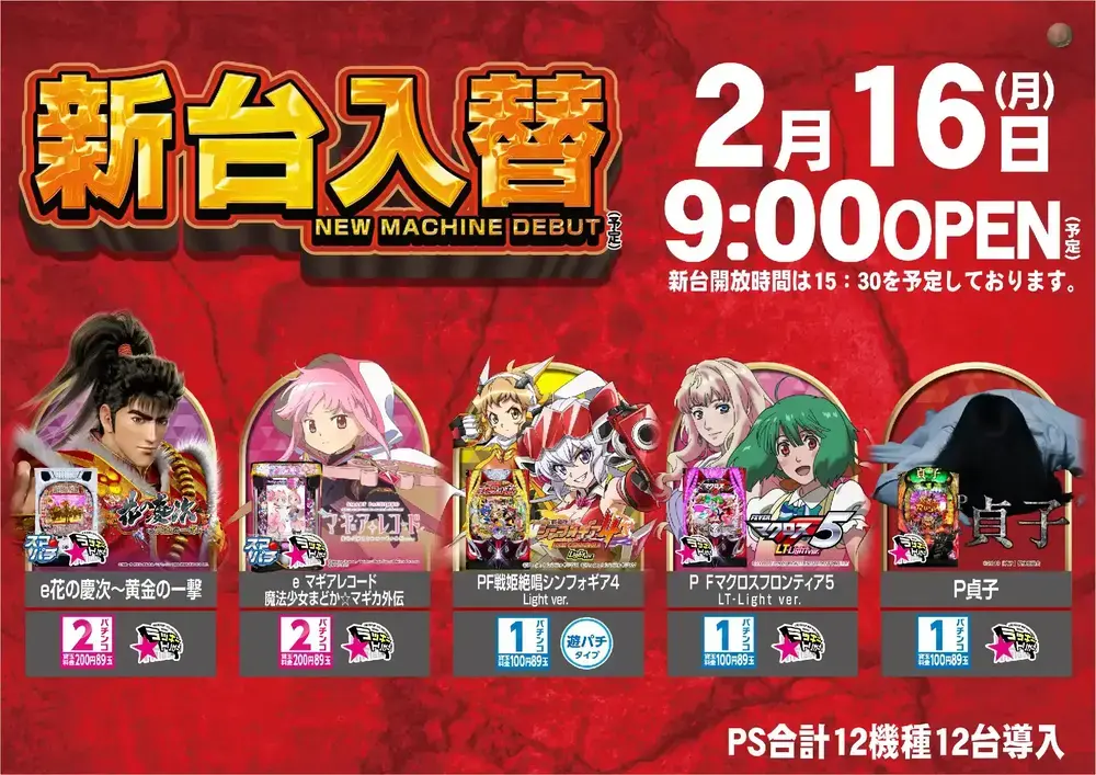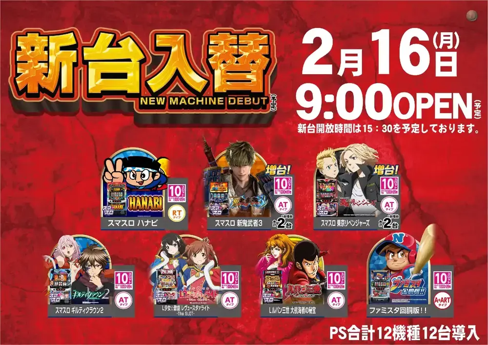 遊技台のデータをはじめ、新台入替や新景品入荷、従業員ブログなど、