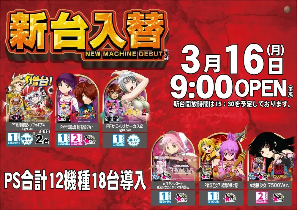 遊技台のデータをはじめ、新台入替や新景品入荷、従業員ブログなど、