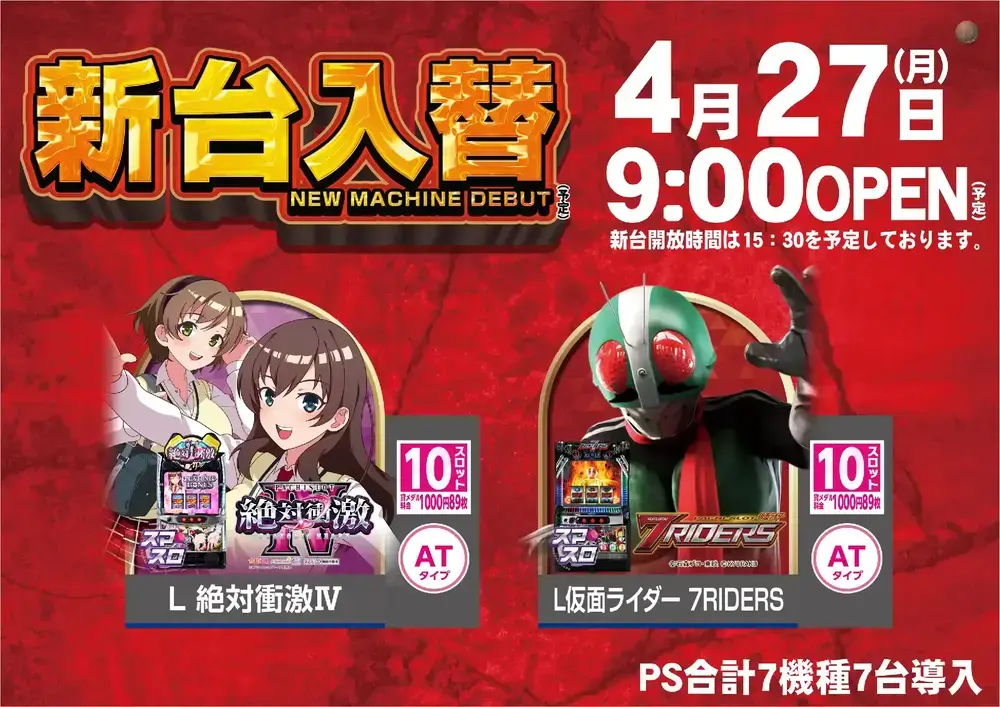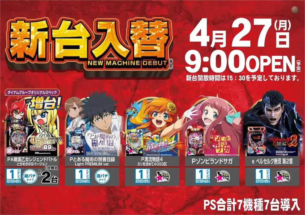 遊技台のデータをはじめ、新台入替や新景品入荷、従業員ブログなど、