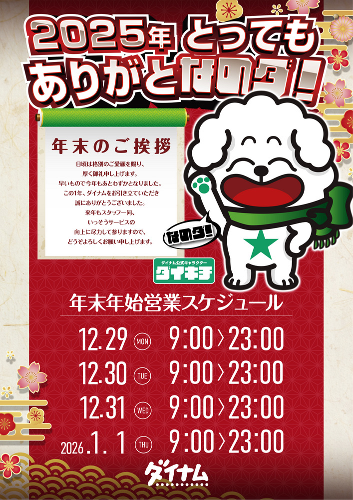 本年も多数様のご来店、誠にありがとうございました。