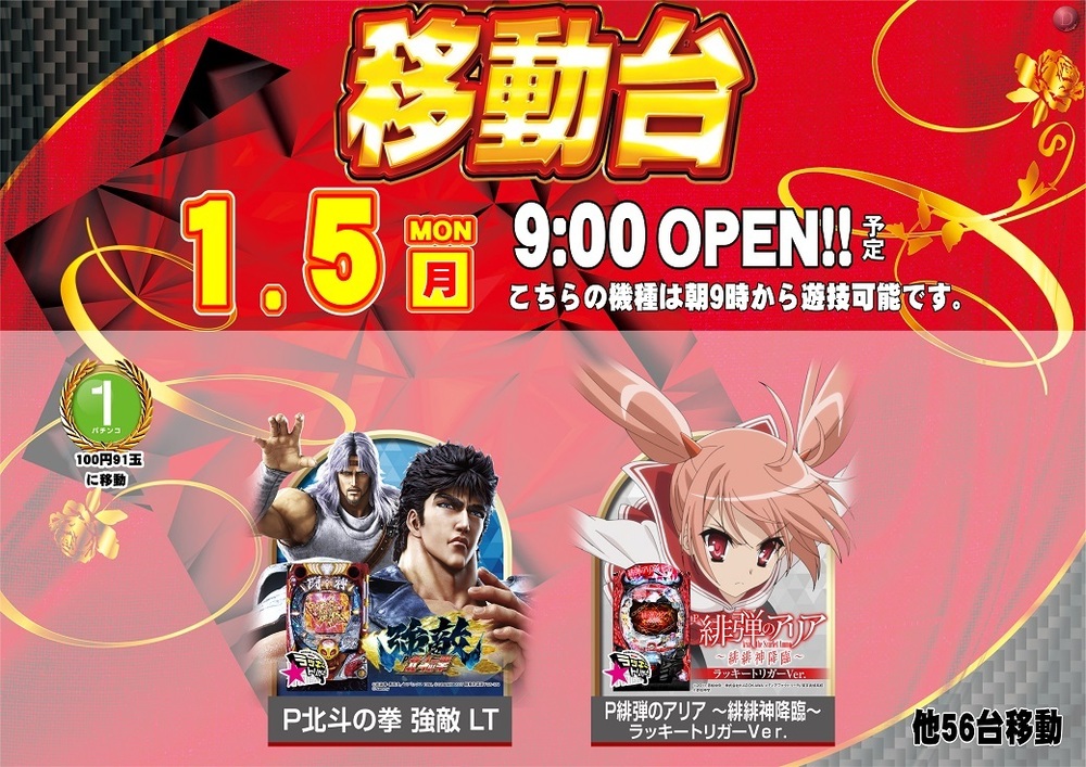 新台ご遊技ご希望のお客様はお時間までにお集まりください。