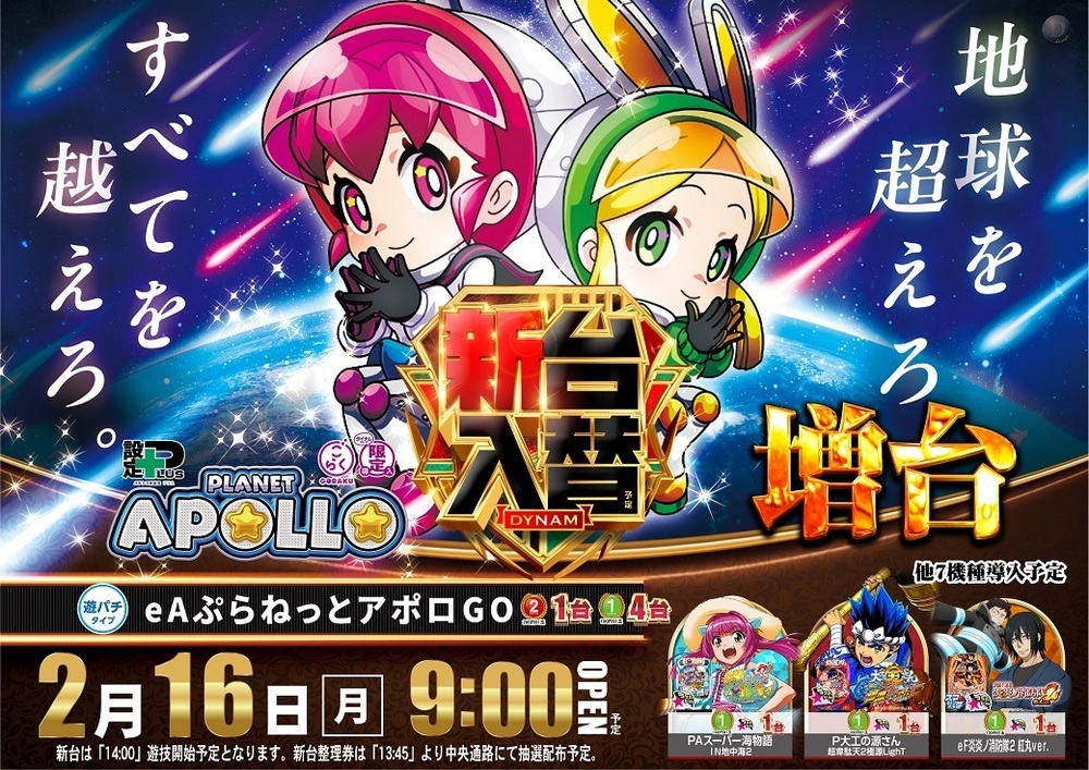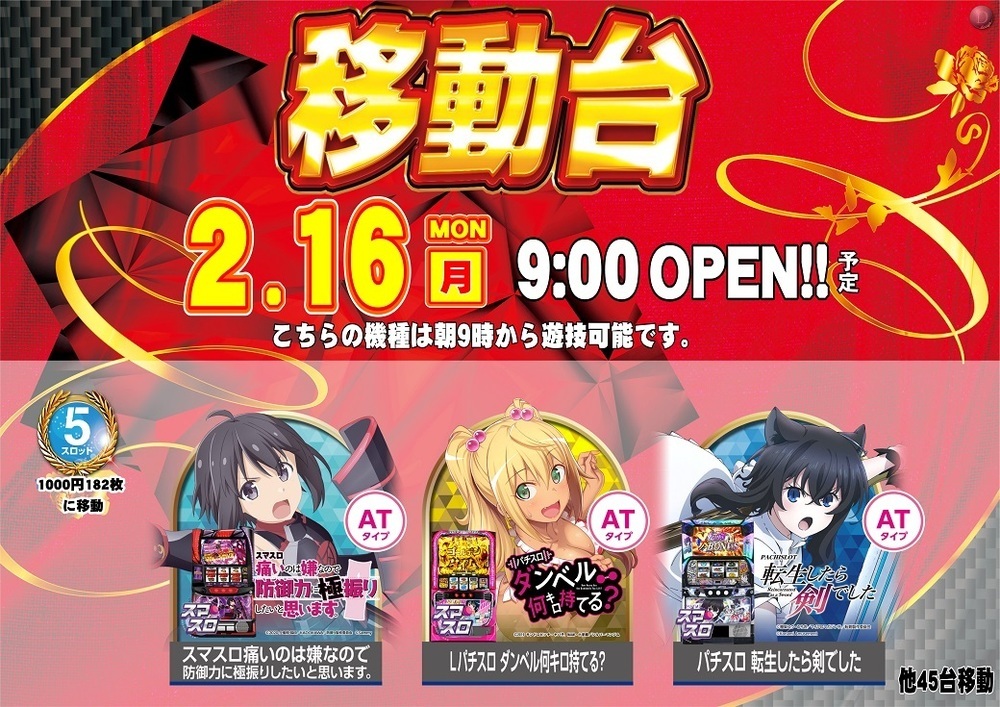 新台ご遊技ご希望のお客様はお時間までにお集まりください。