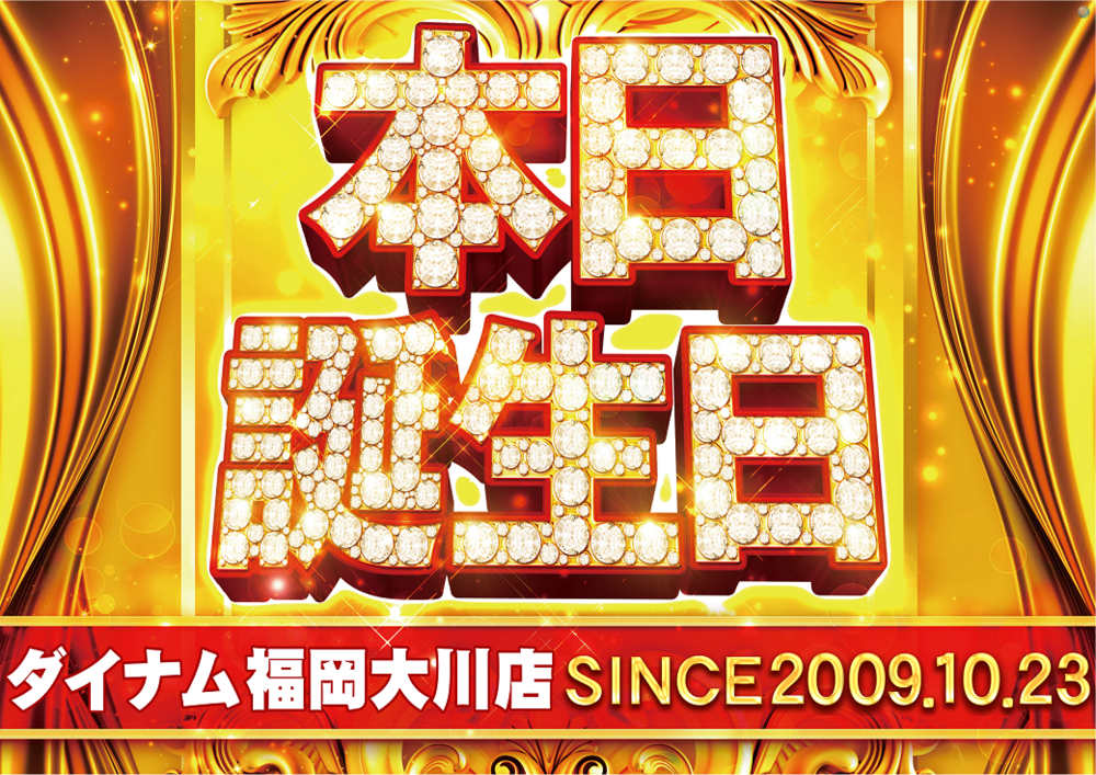 本日2025年10月23日、ダイナム大川店は16周年を迎えます。 2009年にオープンして以降、日々ご来店いただくお客様1人1人の支えがあったからこそと深く感謝しております。 今後も従業員一同精進して参りますので、変わらぬご愛顧を賜りますようお願い致します。