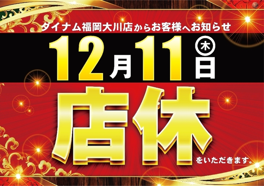 12月11日(木) は 店休日とさせて頂きます。