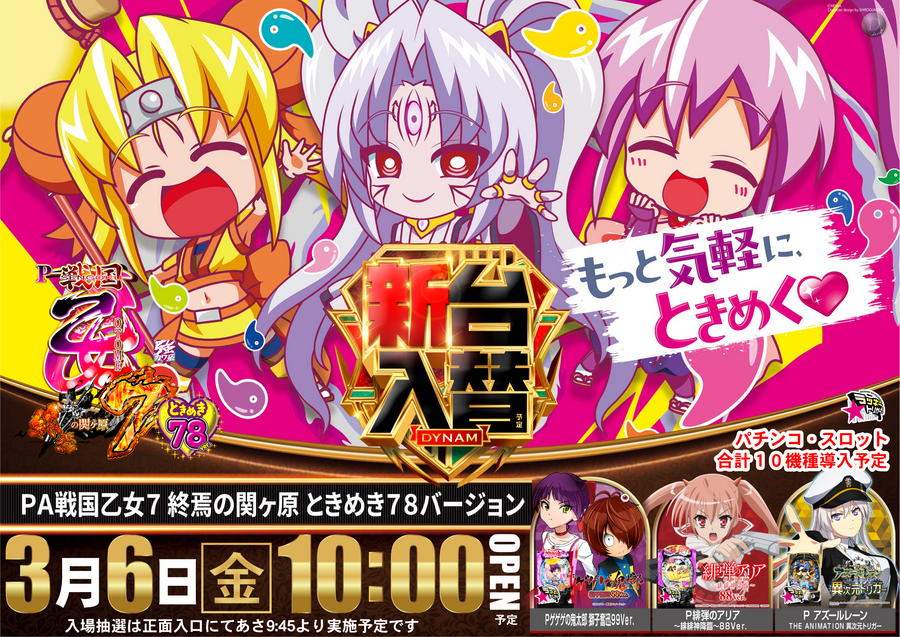 ♦パチンコ導入機種 PA戦国乙女7 終焉の関ケ原 ときめき78バージョン
