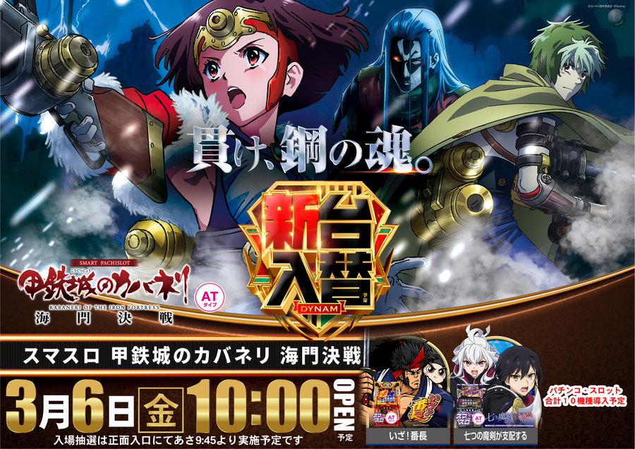 ♦1,000円90枚スロット導入機種 スマスロ 甲鉄城のカバネリ 海門(うなと)決戦