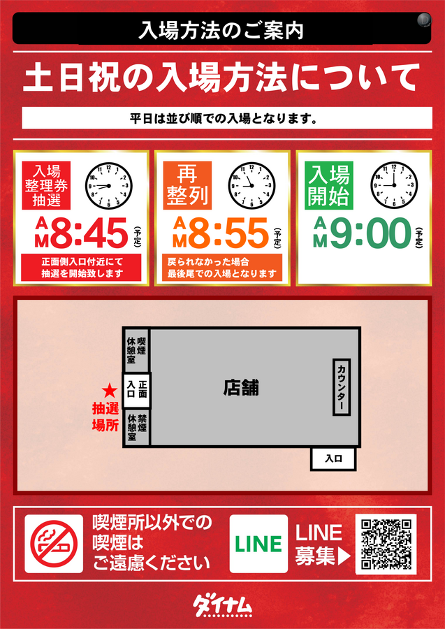ダイナム福井大野店の入場方法について ご案内致します