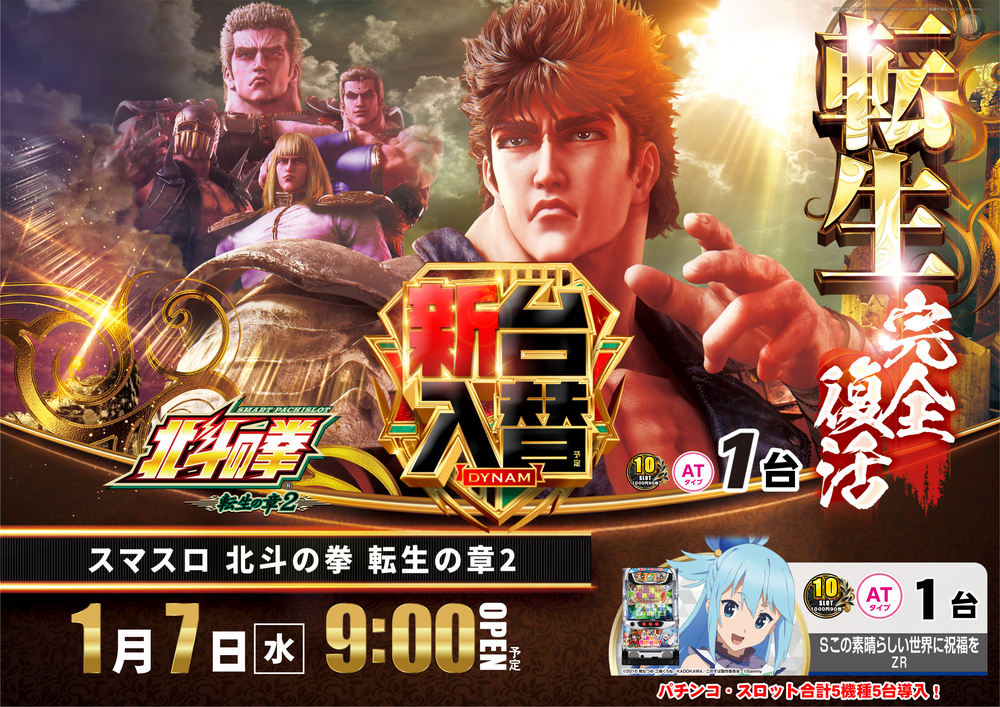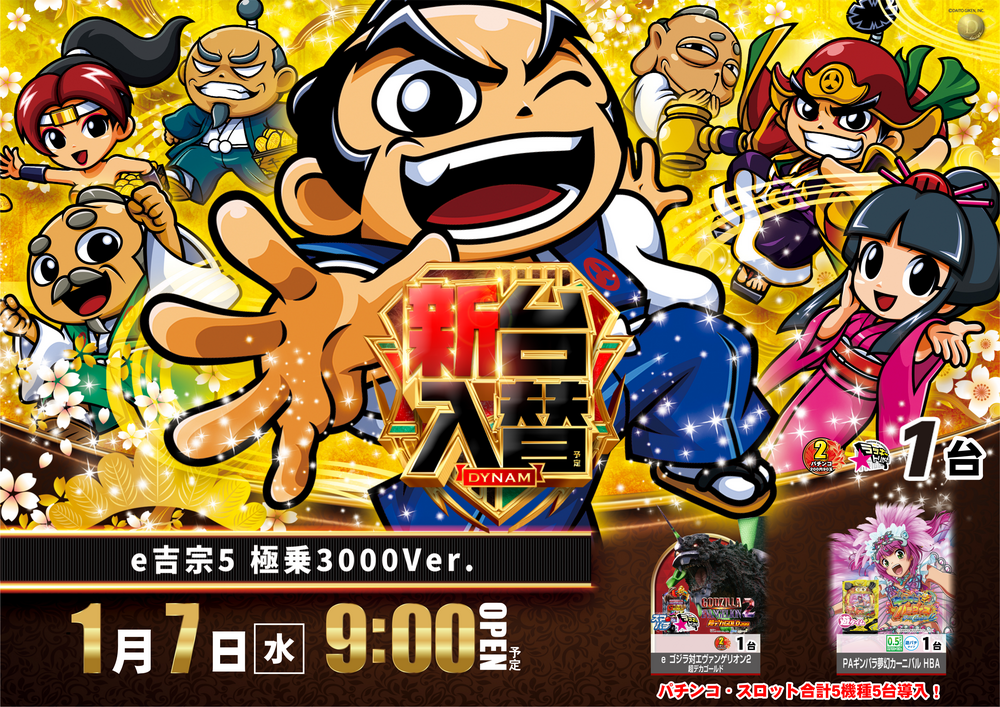 ダイナム岐阜日野店ホームページを ご覧頂き誠にありがとうございます!! 1月7日(水)新台入替のご案内です